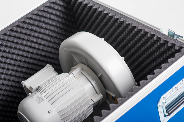 Dieser 0,95 kW Ventilator mit automatischer Druckregulierung wird standardmäßig in einem Flight Case auf Rollen geliefert. Der Ventilator wird bei allen Super Silent Air Tracks Pro angewandt.